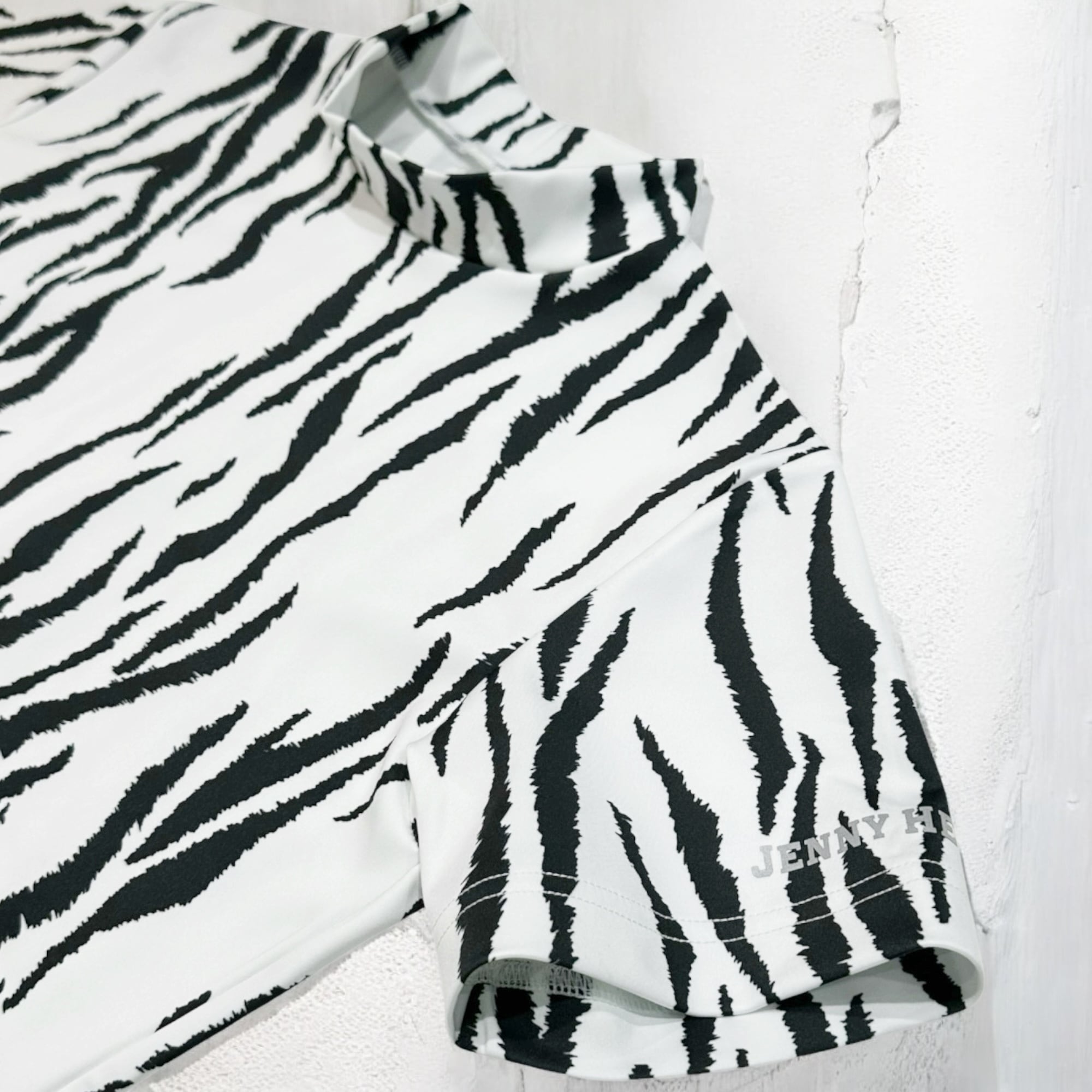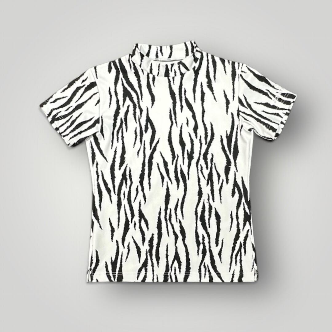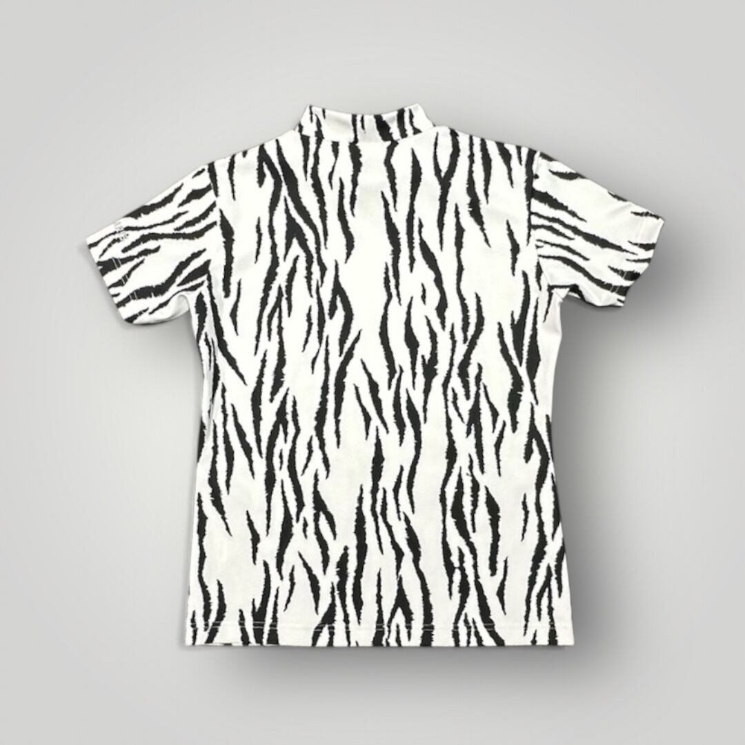 Ladies Animal Mock Neck Zebra レディースゴルフウェア アニマル モックネック ゼブラ 半袖 春夏 高ストレッチ 肌触り柔らか レディース ホワイト
